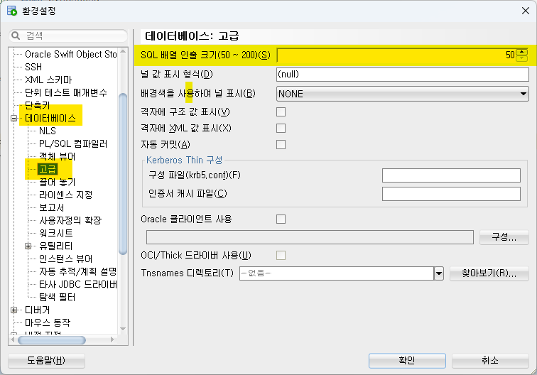 > SQL Developer : SQL문 조회 시 50행만 먼저 나오고 스크롤을 내려야 내용이 더 나온다.