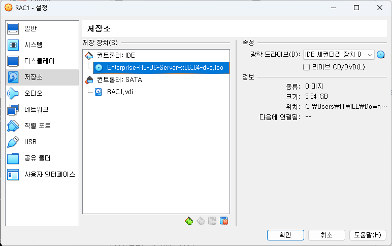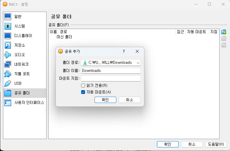 - 폴더 : D:\oracle_11g_rac1