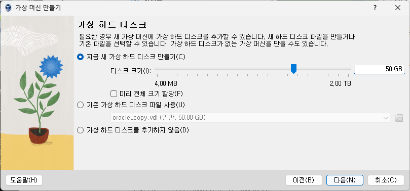 # VM > 새로만들기 : 가상 하드 디스크 만들기