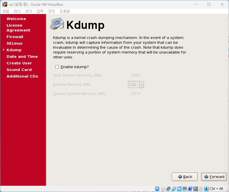 Enable Kdump? > 체크 해제