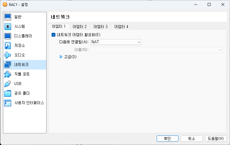 # rac1 > 설정