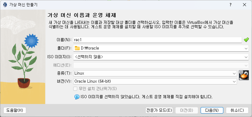 - ISO 이미지 : <선택하지 않음>