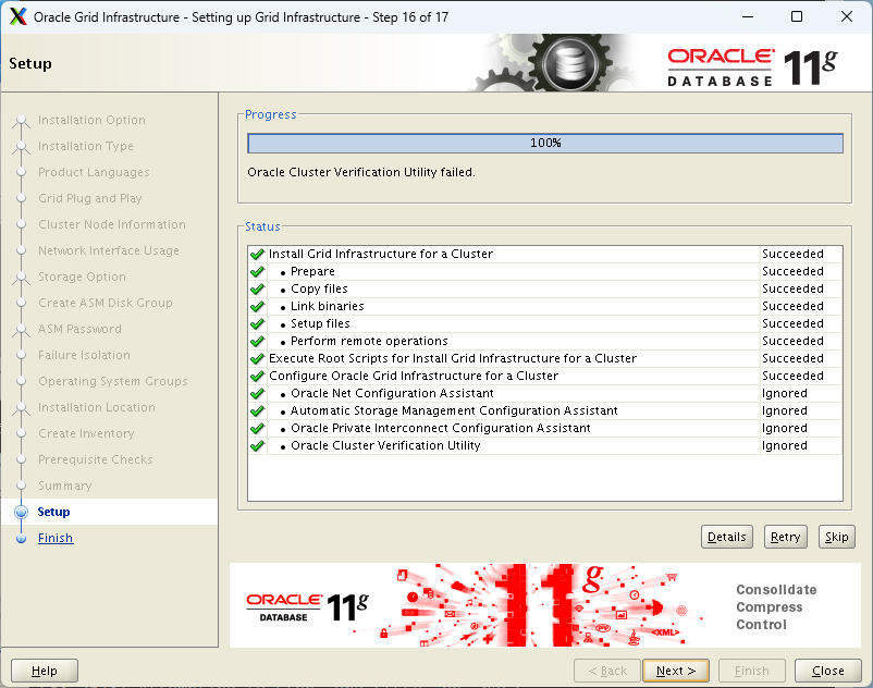# [INS-20802] Oracle Cluster Verification Utility failed.