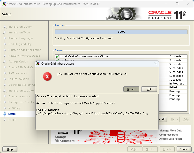 # [INS-20802] Oracle Net Configuration Assistant failed.