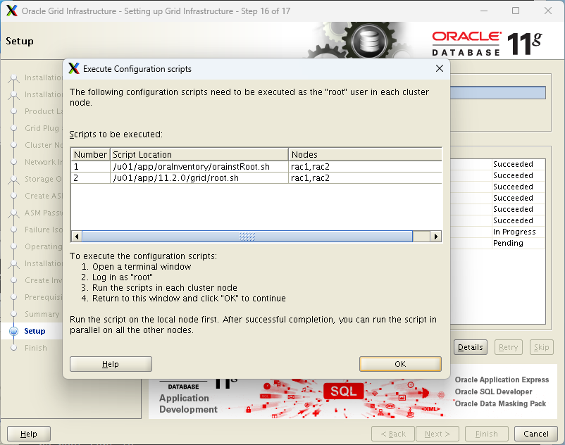 3. rac1에서 스트립트 수행 완료 후 rac2에서 스크립트 수행