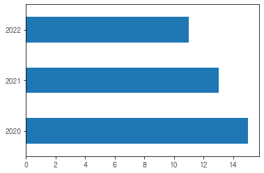 plt.barh(y=dept_cnt.index, width=dept_cnt['도수'])