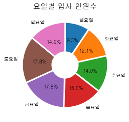 | [문제] 요일별 입사 인원수에 대해서 pie chart 시각화 해주세요. | |