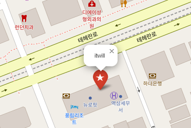| m = folium.Map(location = [latitude, longitude], zoom_start = 15, tiles = 'OpenStreetMap') folium.Marker(location = [latitude, longitude], popup = 'itwill', icon = folium.Icon(color = 'red',icon = 'star')).add_to(m) m.save('C:\\data\\seoul.html') # 파일로 저장 |