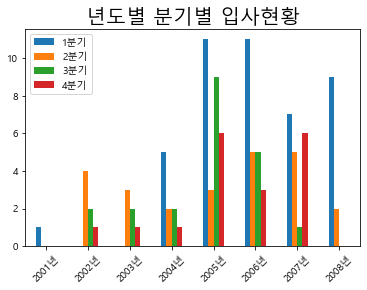 | [문제] 년도 분기별 입사현황 막대그래프를 생성해주세요. | |