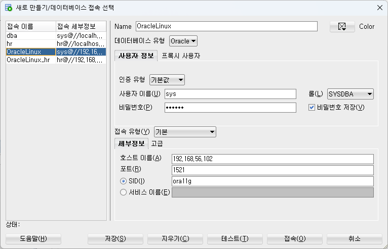 >>> ORACLE_SID=ora11g # 환경변수에 설정한 값