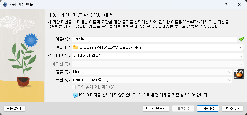 Oracle VM VirtualBox > 도구 > 새로만들기