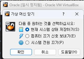>>> 가상머신에서 리눅스 OS를 완전 종료하면 항상 초기화 된다. 시스템 상태 저장으로 닫자![]() |