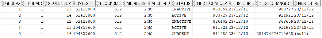 Current log# 4 seq# 20 mem# 0: /u01/app/oracle/oradata/ora11g/redo04.log